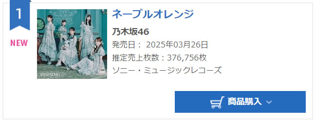 【乃木坂46】38thシングル「ネーブルオレンジ」初日売上376,756枚 前作より1.6万枚増 スポンサーリンク 乃木坂46 2025/03/27 17:22 【乃木坂46】38thシングル「ネーブルオレンジ」初日売上376,756枚 前作より1.6万枚増 943: 君の名は (9f-K32-js-cxz) 2025/03/26(水) 18:13:01.50 ID:E6SR9 ネーブルオレンジ 37万6756枚 https://www.oricon.co.jp/rank/js/d/2025-03-25/ 続きを読む