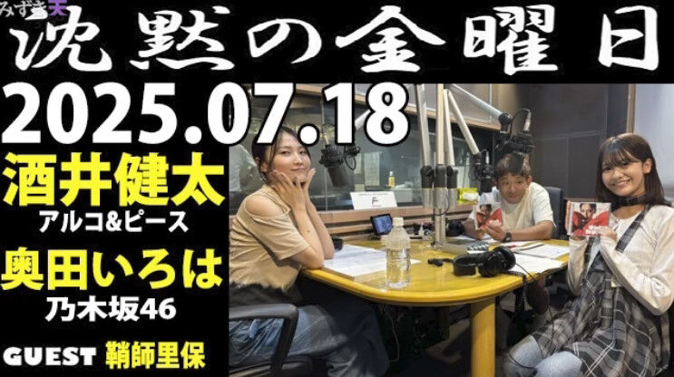 【動画】2025.07.18 沈黙の金曜日 【酒井健太 (アルコ&ピース)、奥田いろは (乃木坂46)、ゲスト: 鞘師里保】