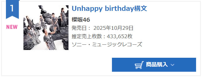 【櫻坂46】13thシングル「Unhappy birthday構文」初日売上433,652枚 スポンサーリンク 櫻坂46 2025/11/23 00:42 【櫻坂46】13thシングル「Unhappy birthday構文」初日売上433,652枚 29: 確かに存在した名無し(やわらか銀行) (ニククエW 81aa-Uh4w) 2025/10/29(水) 18:04:35.58 ID:4KTDUWCq0NIKU 初日 アンハピ 433,652枚 メイブレ 385,848枚 続きを読む
