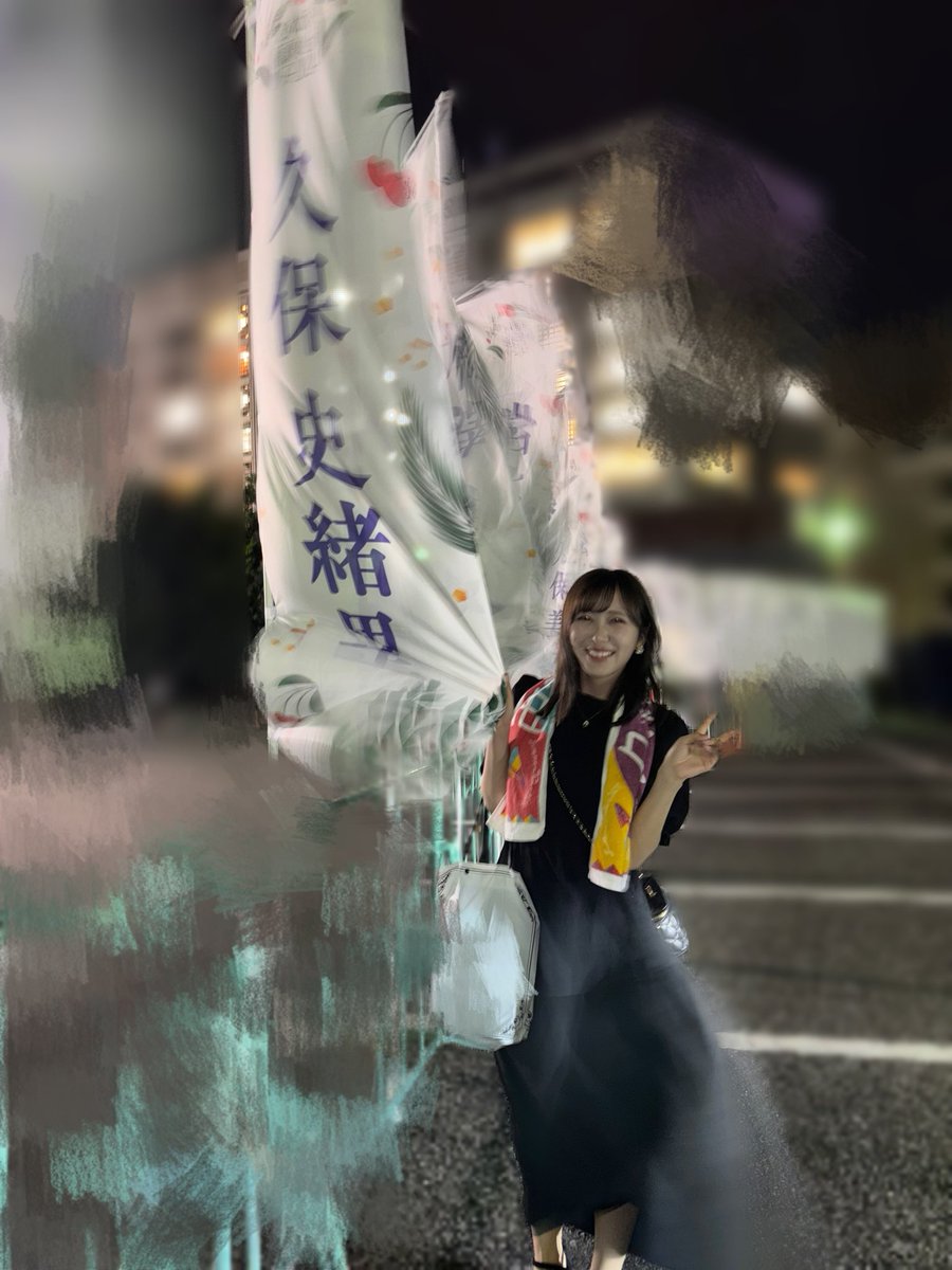 ずっと推しメンと言わせていただいている久保史緒里さんの旗の前で撮らせていただきました🥹